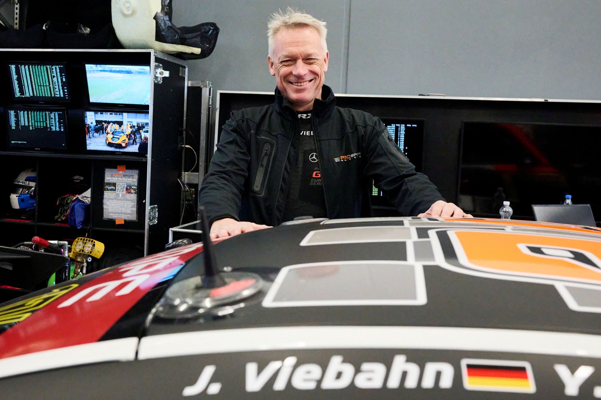 Jörg Viebahn und seine Partner Anton Abee (Hamburg) und Yannik Himmels (Heinsberg) starteten wieder im Mercedes-AMG GT4 von Prosport Racing in der Klasse SP10. Im Training fuhren zunächst die Teamkollegen. Viebahn sollte zum Schluss noch eine schnelle Runde fahren. „Darauf habe ich aber verzichtet. Immer wieder gab es Unfälle oder Ausritte, sodass eine schnelle Runde kaum mehr möglich war. Darüber hinaus hatten meine Teamkollegen den Mercedes auf Startposition 2 gestellt. Das war in Ordnung.“